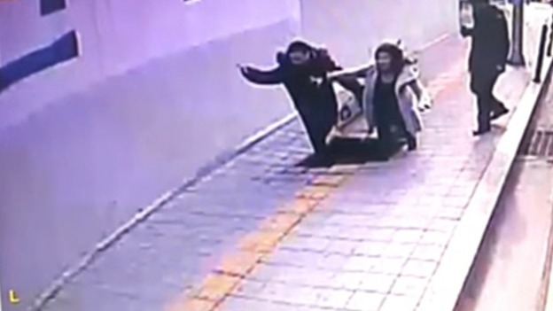 due to a sinkhole that opened up on a sidewalk in Seoul, South Korea.